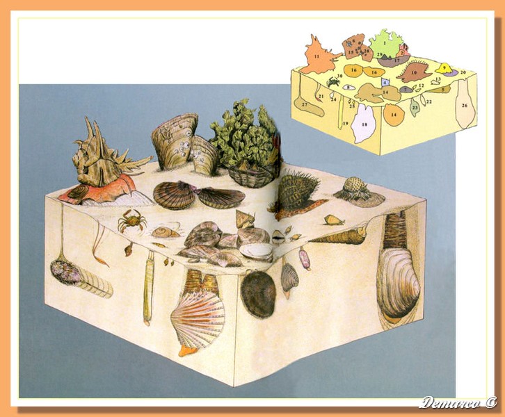 I campioni esposti erano tutti di altissima qualità, tra i Glossus humanus, Arca noae, Pecten jacobaeus, Solen margaritatus, Pecten latissima, Tenagodus obtusus, Ficus geometra, Haliotis tuberculata, Aporrhais uttingeriana, Bolma rugosa svettava, magnifico, un enorme esemplare di Xenophora davolii.