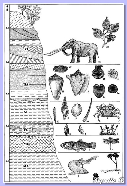 La prima bacheca mostrava una presentazione generale del Progetto CARLOS, la sua origine, il tutto illustrato con le mappe delle località dei giacimenti fossiliferi del Mediterraneo presi in esame.