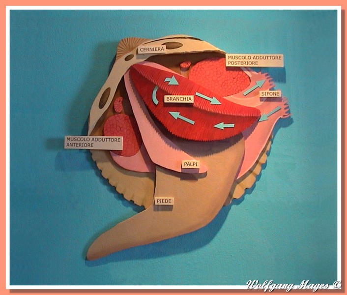 Le vetrine 5 e 6 mostravano, con disegni schematici, le differenze tra le strutture e gli organi interni delle conchiglie bivalvi e dei gasteropodi. Sono state prese in esame le variazioni morfologiche delle conchiglie, che sono risultate maggiori nei gasteropodi rispetto ai bivalvi.