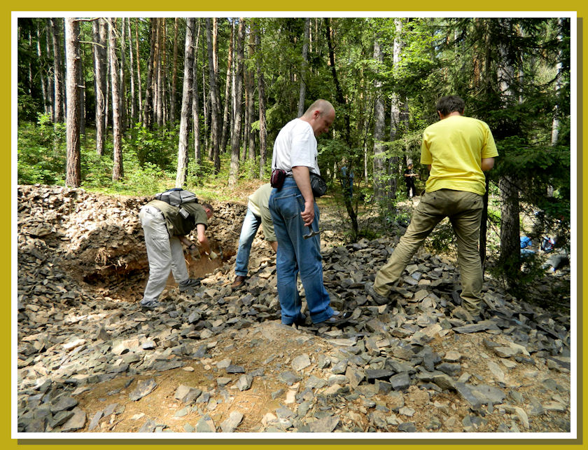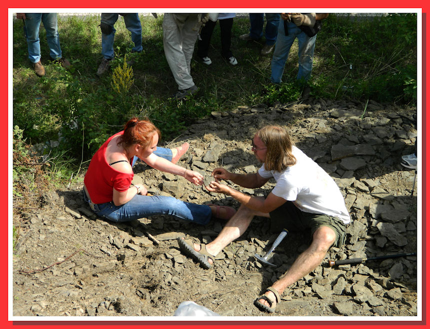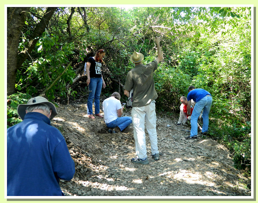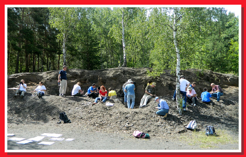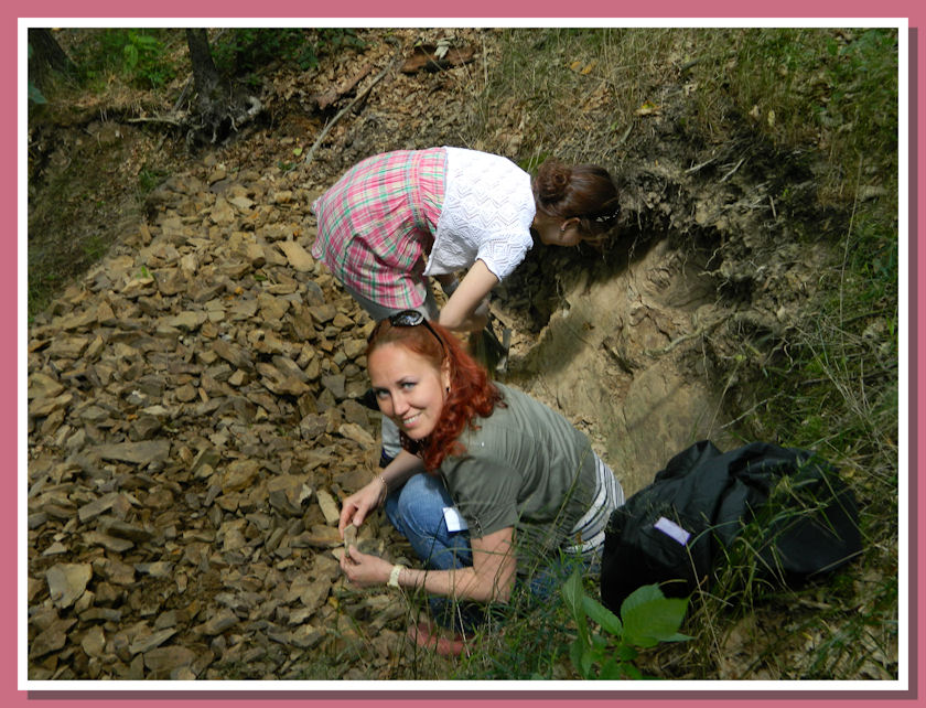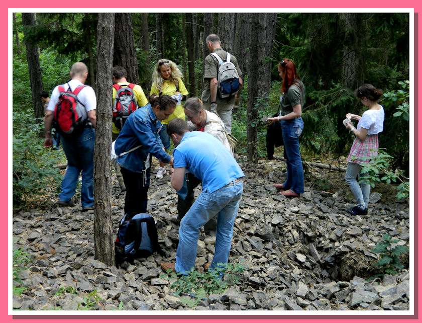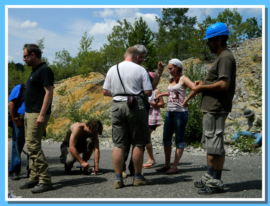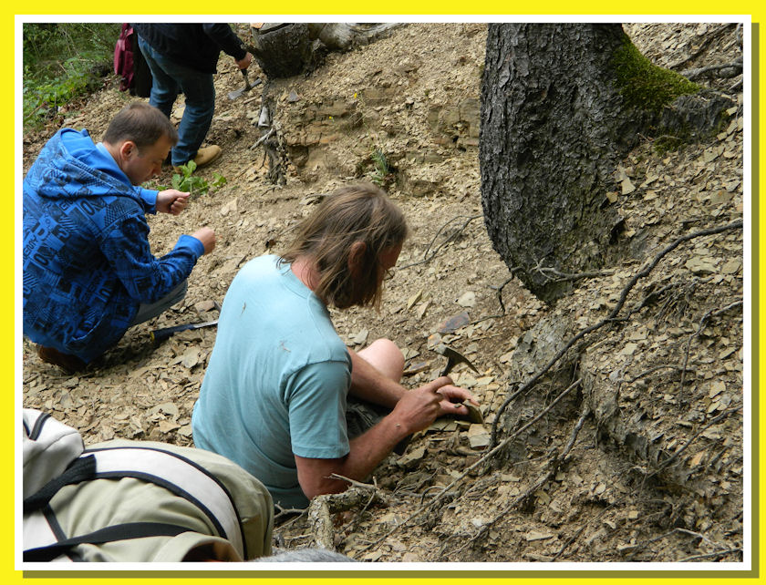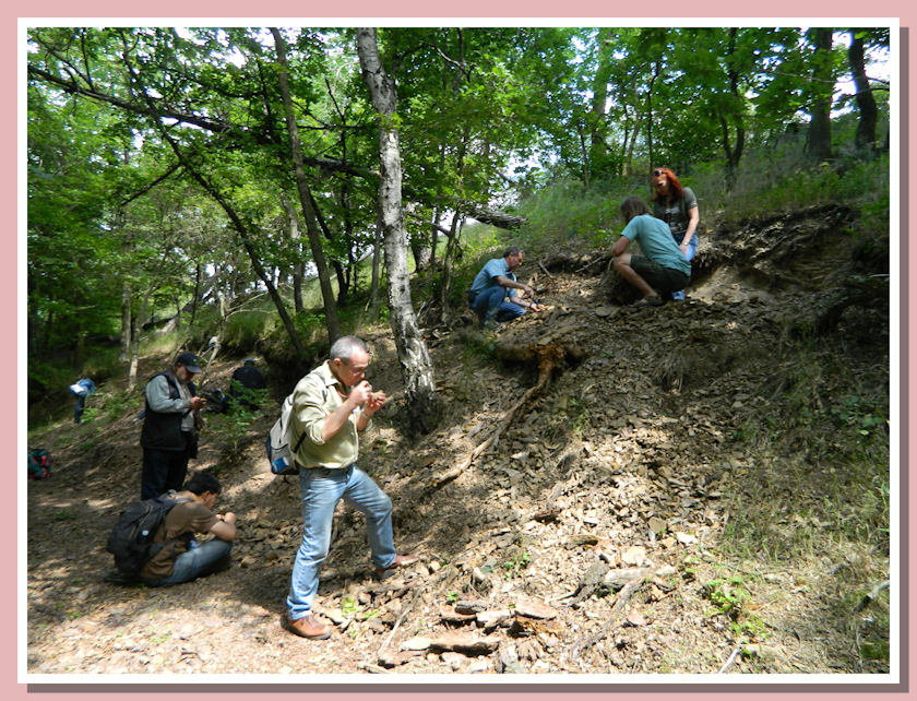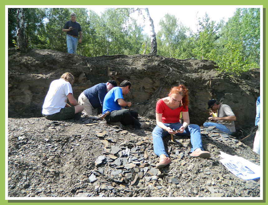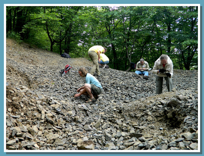 Collecting in the pits on Ostrý vrch Hill. Fieldtrip leader Petr Budil in the white t-shirt.