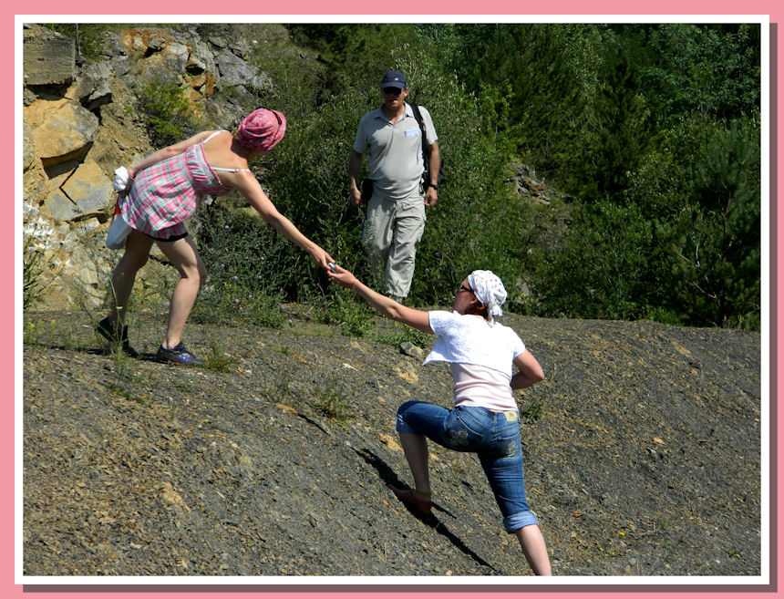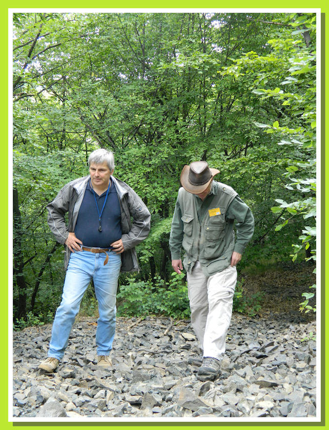 Petr Budil of the Czech Survey explaining about the Ordovician Zahořany Formation. Gulnara and me with our finds
