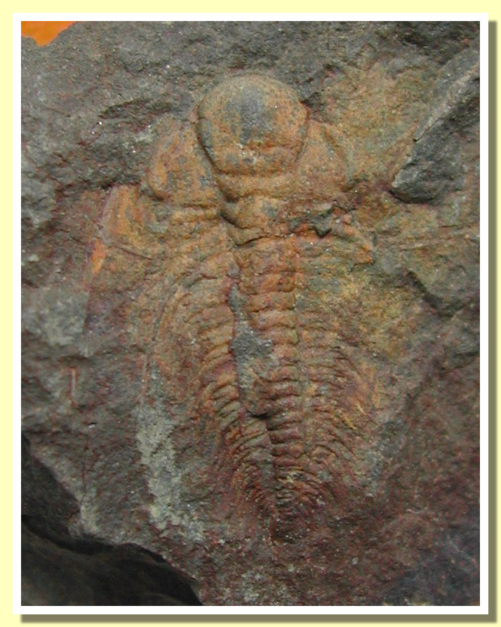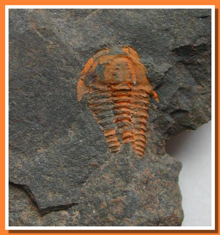 Trilobites from the Jince Formation: all Paradoxides (Paradoxides) paradoxisimmus gracilis – Left to right: a young holaspid, cephalon, and a possible meraspid.