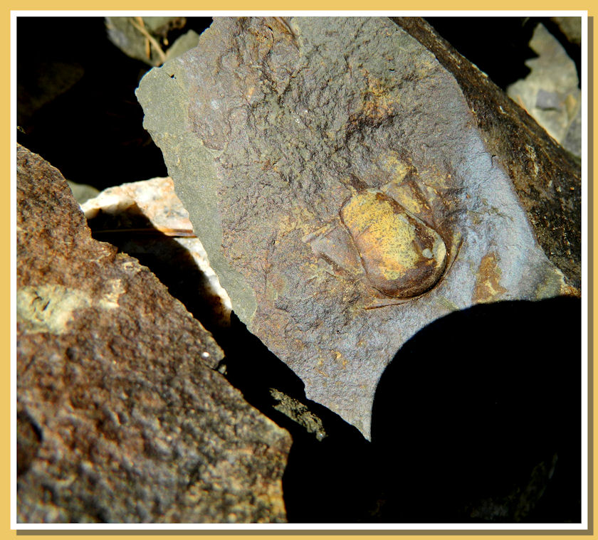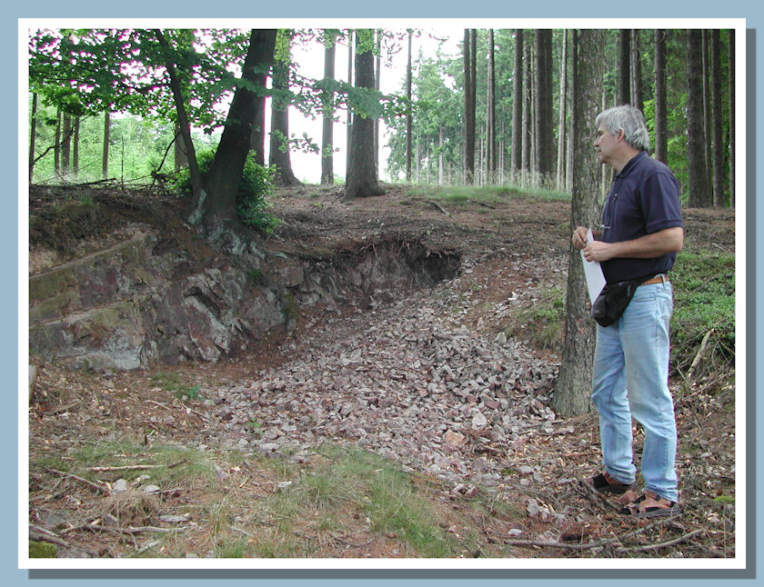 The next locality was at Heydův dvůr near Rejkovice, where the same formation is quarried by collectors along the side of a forest trail. This site is within the Paradoxides (Eccaparadoxides) pusillus zone. The fauna here is dominated by Ellipsocephalus and other polymerid trilobites, although none were found on this trip.