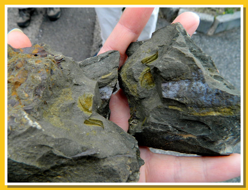 After this we made a stop near the fields in Těškov. Here could be found the famous ‘Šárka’ (Rokycany) balls of the Ordovician Šárka Formation. Although collecting can only be done in the early spring or late fall, the hosts brought some concretions for us to split. The next 2 stops were trilobite faunas that occur mainly as partials, but are extremely important and rare faunas. These were the Řevnice quartzites of the Libeň Formation at Mýtský vrch Hill and the Mílina Formation at Olešná village. The first had rare trilobites preserved in quartzite, while the latter had a diverse, but rare, fauna preserved in chert.