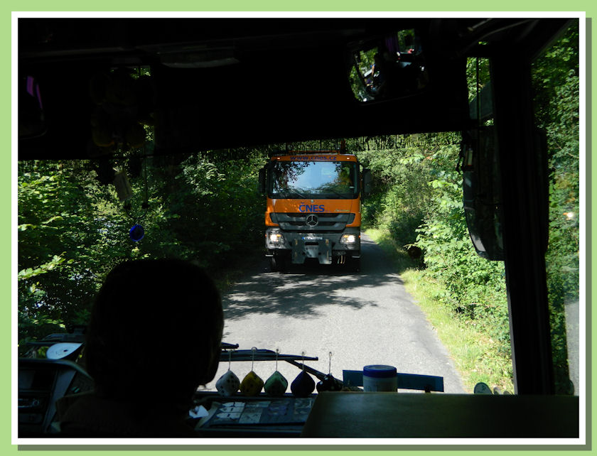Standoff with a truck on the narrow Czech country roads. Field trip leader Oldřich Fatka with student assistants Martina Aubrechtová and Lukáš Lajbl