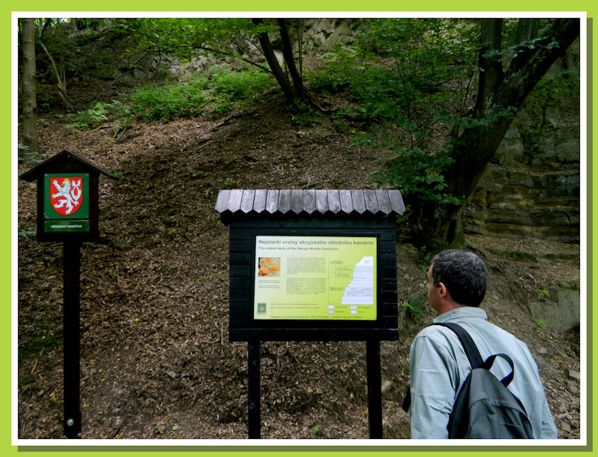 We then made a stop at a small roadside quarry (Orthisovy lumek) where Dr. Fatka gave a description of the local stratigraphy. This site, which is protected, shows the lower stratigraphic levels of the Buchava Formation unconformably overlying the Precambrian.