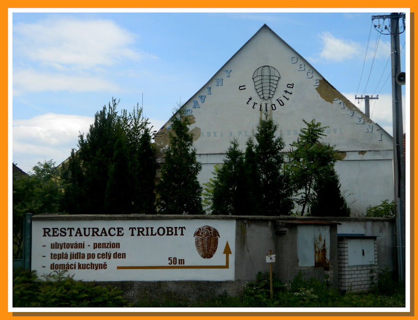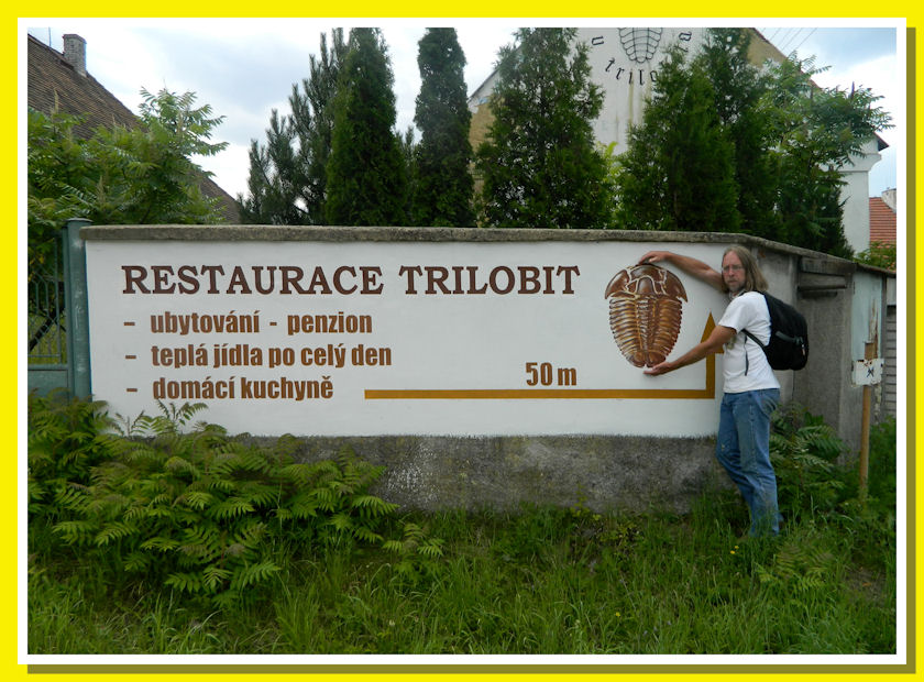 The ‘Trilobit Restaurace and Pension’ in Skryje, with me sampling the menu