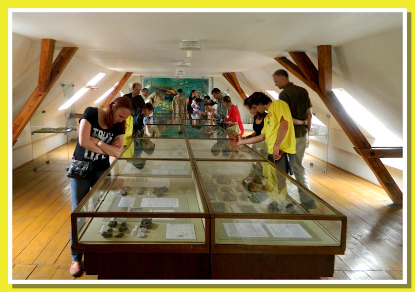 After lunch we walked behind the restaurant to the Skryje museum and examined lots of complete trilobites and other fossils. Skryje really is a town dedicated to its trilobite heritage – with a trilobite hotel and restaurant, a museum, and a monument to Joachim Barrande.