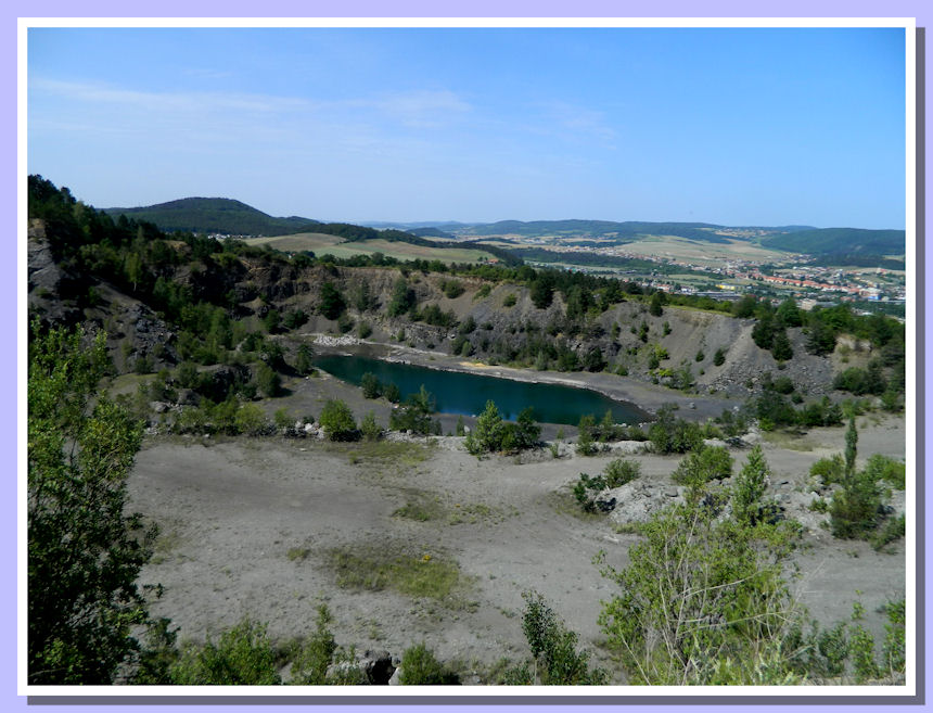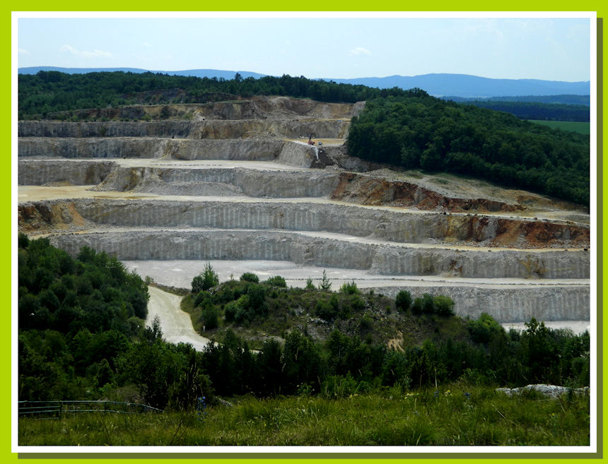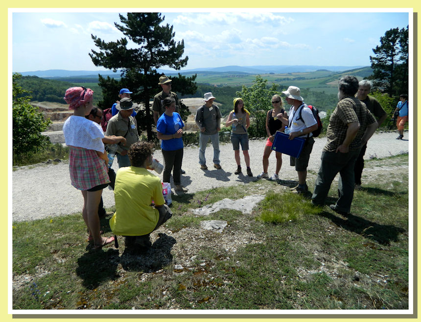 On top of Zlatý kůň Hill and a view from the hill of the Koneprusy quarry. Fieldtrip leader Petr Budil explaining the geology.