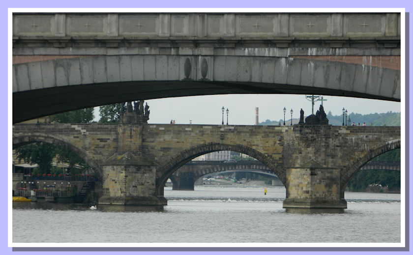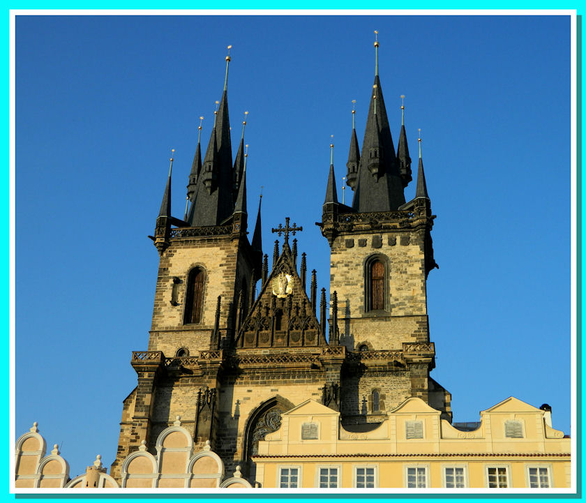 Church of Our Lady Before Tyn in Staroměstské náměstí (old town square) and the bridges over the Vltava River in Prague.